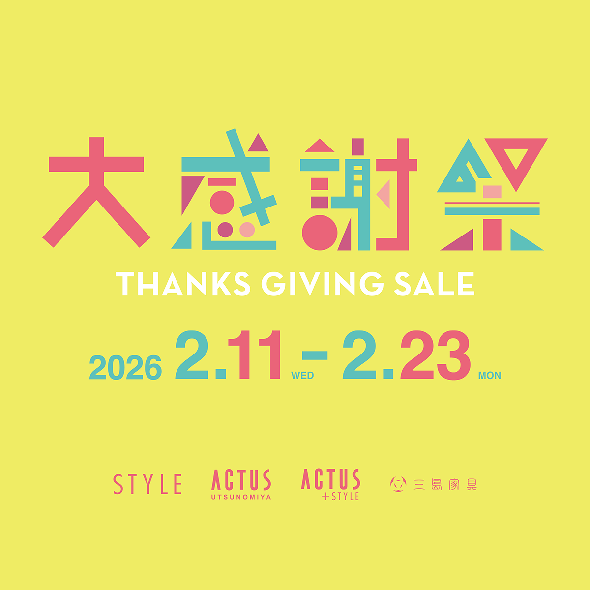 期間:2026年2月11日(水・祝)〜2月23日(月・祝) 日頃のご愛顧に感謝を込めて、STYLEでは期間限定の大感謝祭を開催いたします。 憧れの家具や雑貨を、今だけの特別価格でご提供。 さらに、会員様にはポイントアップなど嬉しい特典もご用意しています。 &…