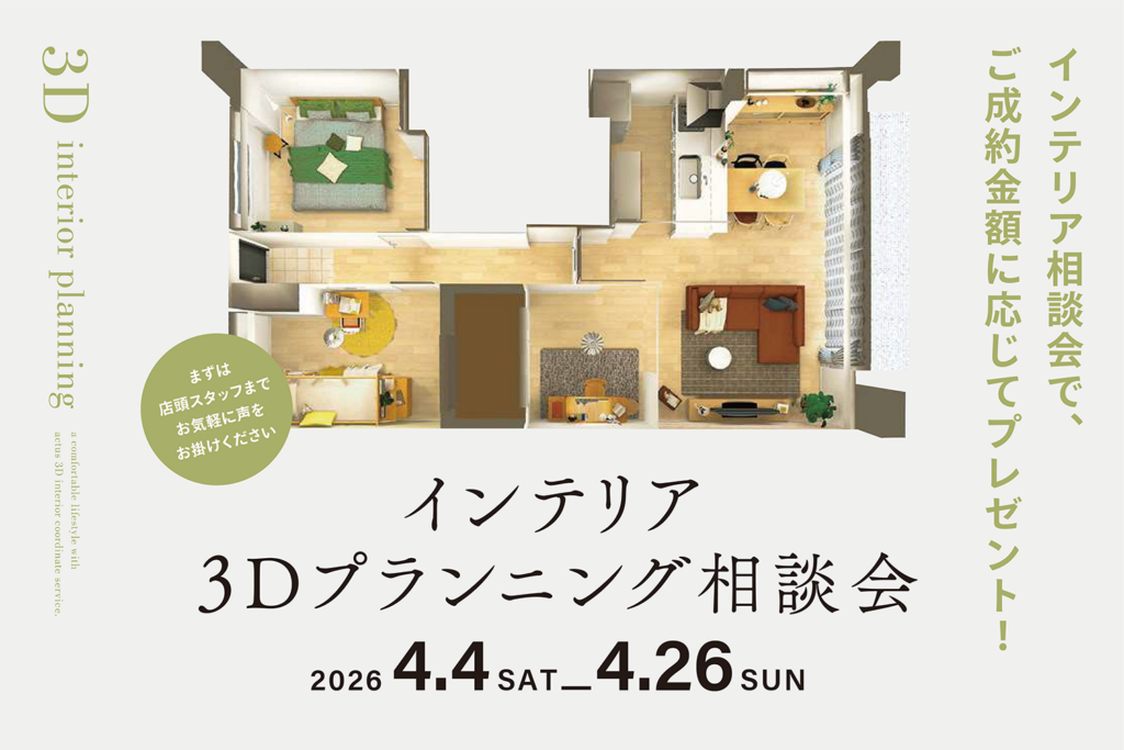 2026年4月4日(土)〜4月26日(日)までの期間、インテリアプランニング相談会を開催いたします。