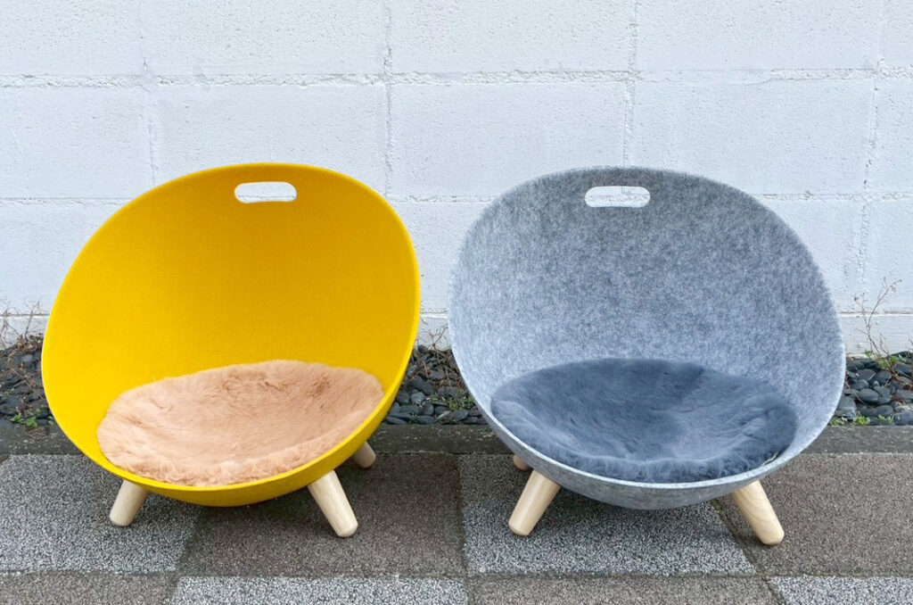 素材は本体にフェルト、脚にオーク材を使用することにより木製、アイアンレザー等さまざまなインテリアに合うデザインに仕上げています。展開はワンサイズ。クッションの直径がおよそ37cm、耐荷重20kgなので小型~中型のワンちゃんネコちゃんであれば使用可能です。