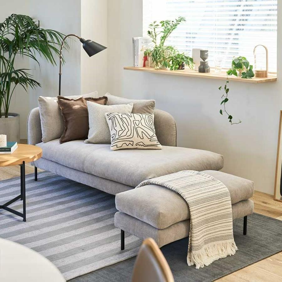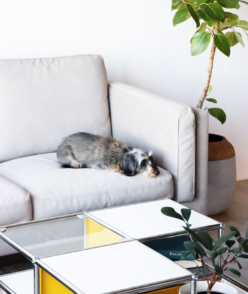 直線的でモダンなデザイン。張地のバリエーションも豊富で、ペット対応生地との相性も◎。空間にすっきりと馴染みながら、家族の居場所をつくります。