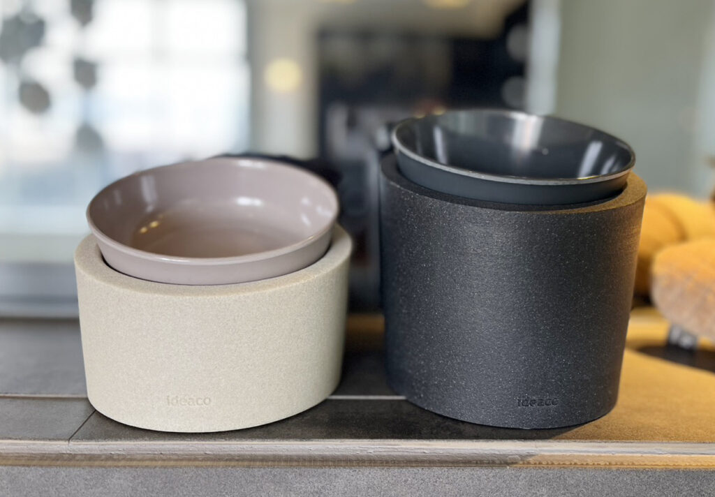 食器とベースがセパレートになったペットフィーダーベース(土台)にボウルをセットするだけのシンプルな設計で、身体の大きさに合わせて高さを選べる2サイズです。ボウルはフードボウルと、350㎖の目印付きのウォーターボウルの2種類からお選びいただけます。