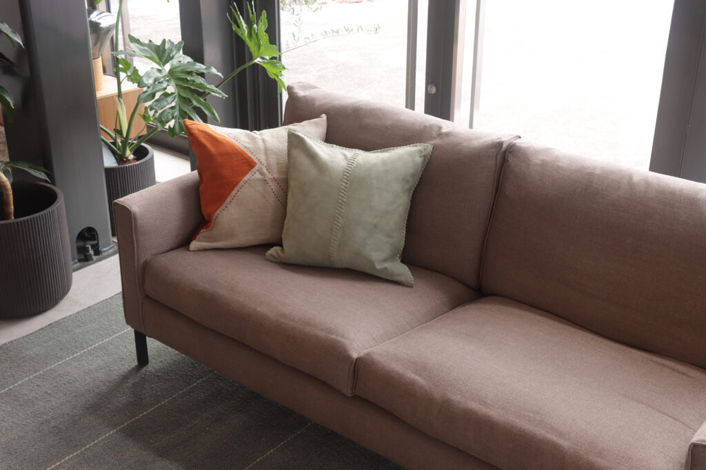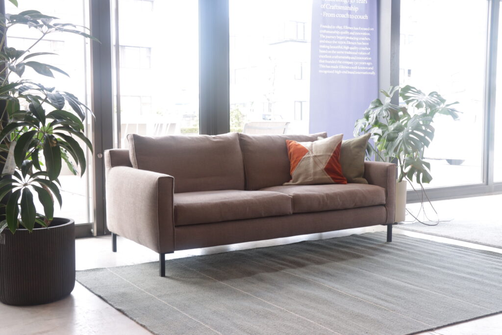 SUNは薄手で柔らかい生地なので、eilersenソファの特徴でもある、たっぷりと詰められたフェザーや何層にも重ねられたクッション構造という座り心地を十二分に味わえます。