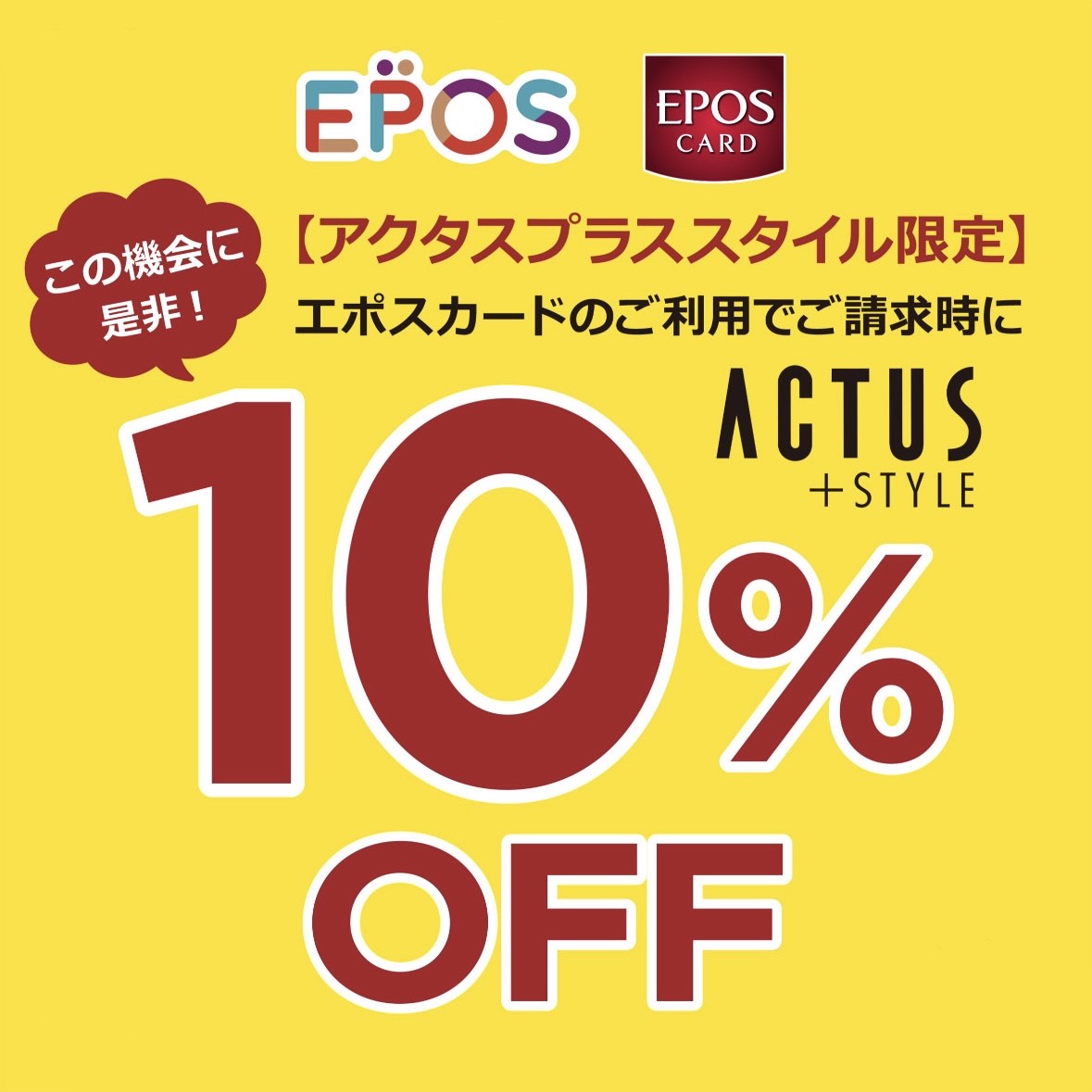 展示処分価格も!セール対象品も! エポスカードでお支払いいただくと、お引き落とし時に10%OFFが適用されるスペシャルDayのご案内です。 ACTUS+STYLE菖蒲店は埼玉県久喜市にあるモラージュ菖蒲内の2階にあるスタイルグループの店舗です。 この店舗では…