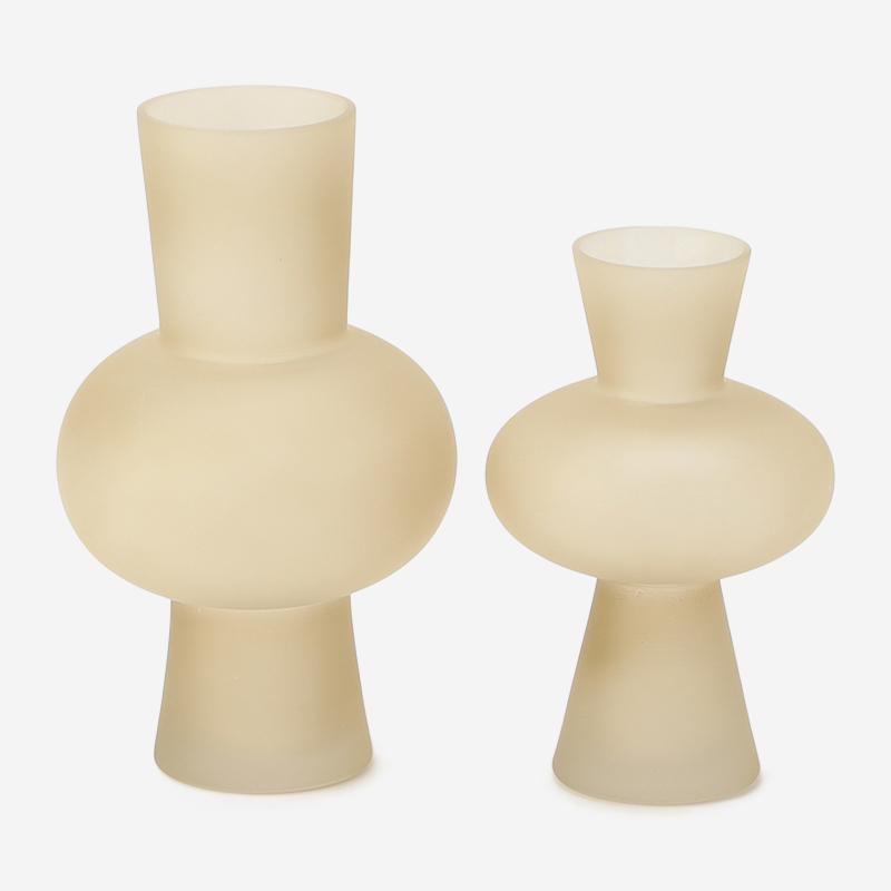 職人により作られたハンドメイドガラス。個性的なフォルムながら表面のフロスト加工により優しい雰囲気に仕上がりました。モダンな空間にはもちろん、ウッディーでやさしい空間にも合わせることができます。