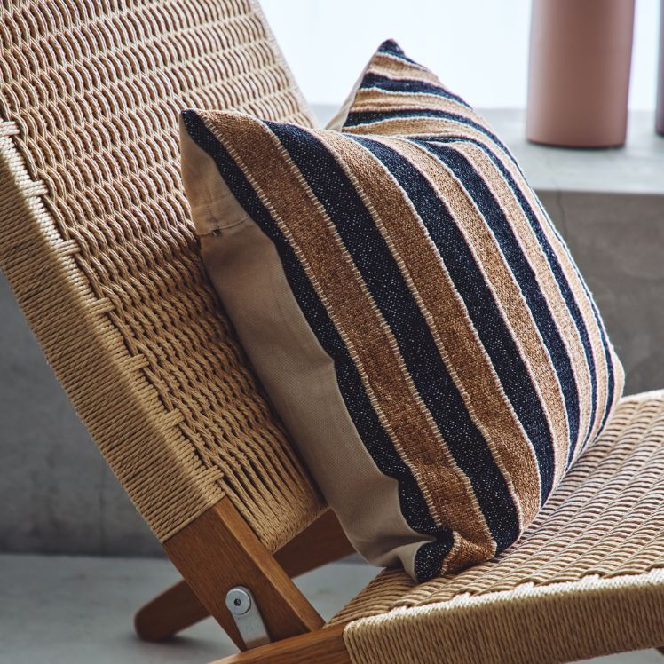 落ち着いた色使いと織り柄が、お部屋に上品で洗練された印象を与えるクッションカバー。素朴な素材感が温かみのある心地よい空間を演出します。