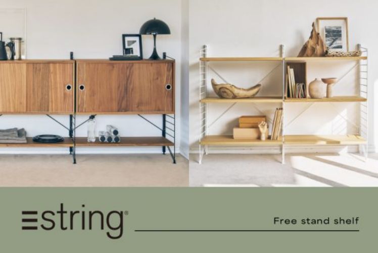 北欧デザインの壁付けシェルフの定番として、世界中で愛用されているString®(ストリング)。フリースタンドタイプ(自立式)仕様が加わり、壁への設置に抵抗があった方にもおすすめのシェルフです。