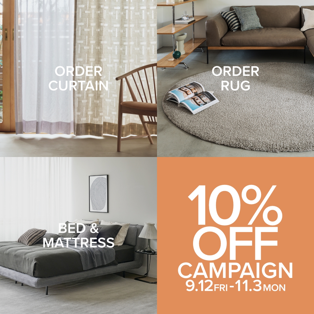 <期間限定>ベッド&マットレスやオーダーラグ・カーテンが10%OFF!