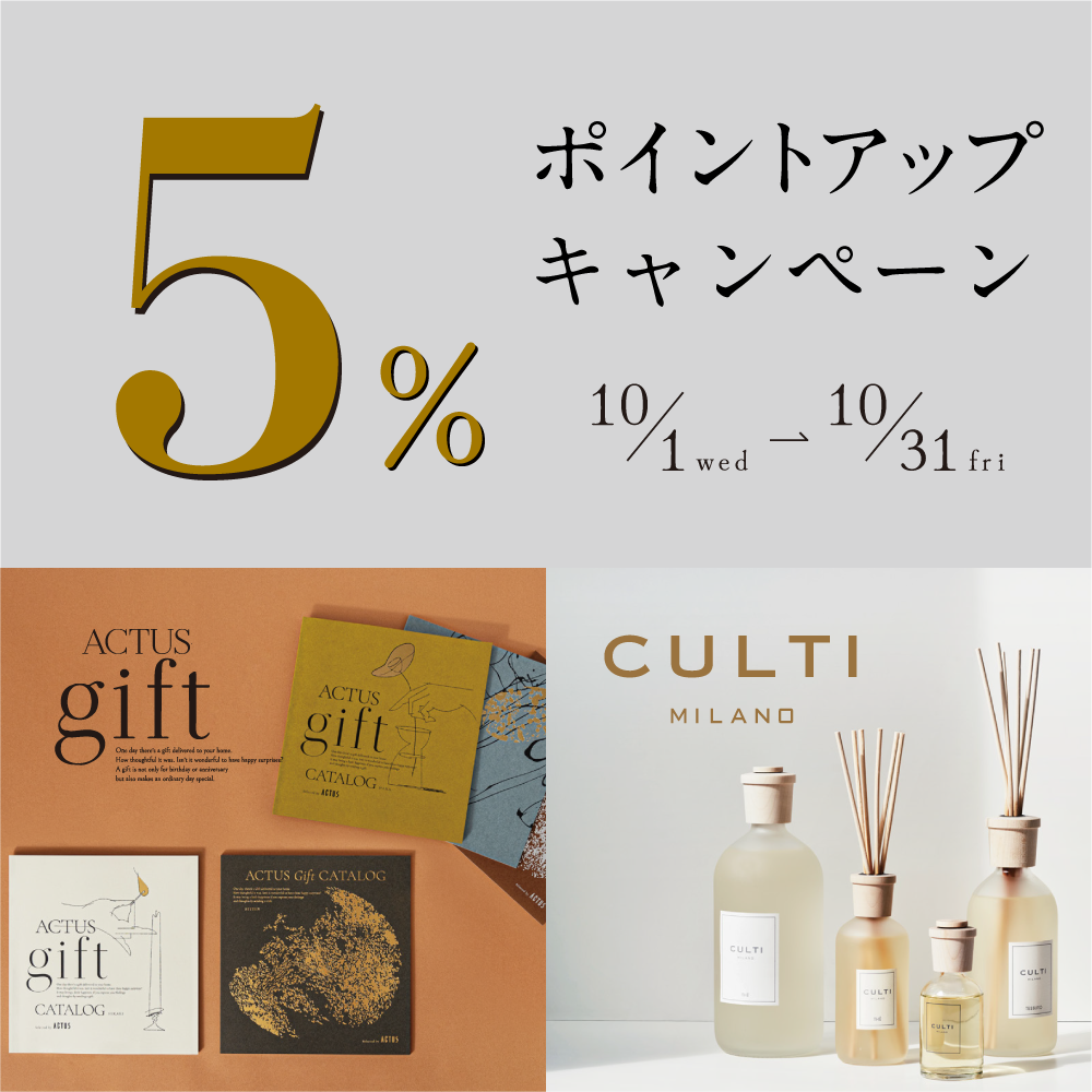 POINT UP CAMPAIGN    2025年10月1日(水)~10月31日(金)   人気のCULTI MILANO製品とアクタスオリジナルギフトカタログを対象に、 お得なポイントアップキャンペーンを同時開催いたします。…