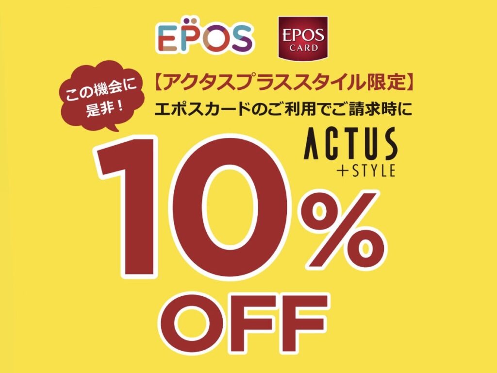→A/ なります。安心安全のエポスカードはモラージュ菖蒲としっかり提携しており、ACTUS+STYLEも年に1〜2回お世話になっております。